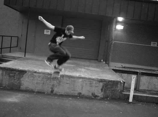 Turning the key, I hear the wheels scratching the tar and asphalt, metal struts hitting cement. The skateboarders like the open space–and the night. This corner of the strip mall is recessed, secreted at night far from the beaming boulevard with auto showcases and fast food restaurants.